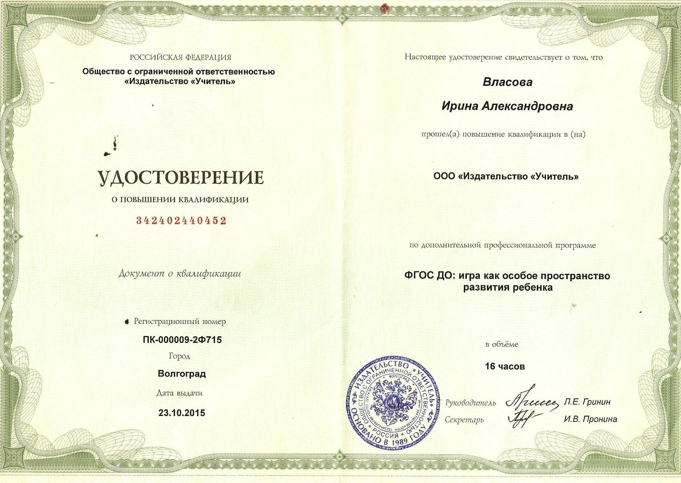 - ООО "Издательство "Учитель" "ФГОС ДО: игра как особое пространство развития ребенка", октябрь, 2015г. в объеме 16 часов /kursy_fgos_001.jpg