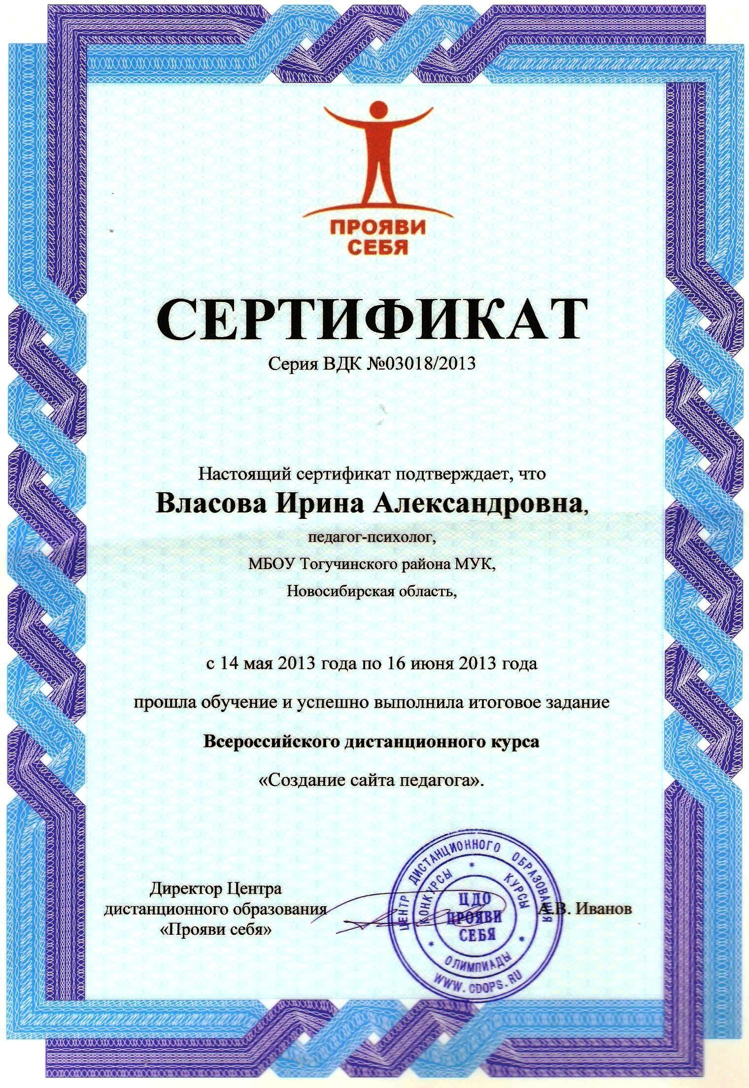 - ЦДО «Прояви себя», «Создание сайта педагога», с 14 мая по 16 июня 2013 г.; /sert.jpg